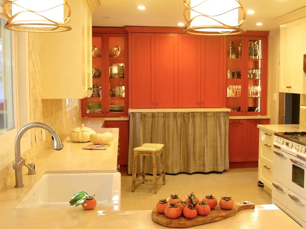PERSIMMON PALETTE: Expanded footprint and updated aesthetic, rich with texture and a wonderful vintage O’Keefe and Merritt range.